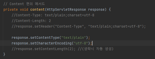 -- (스프링에서 서블릿을 다룰때 응답 메시지에 위 두개 헤더만 넣으면 아래것은 자동으로 처리한다)