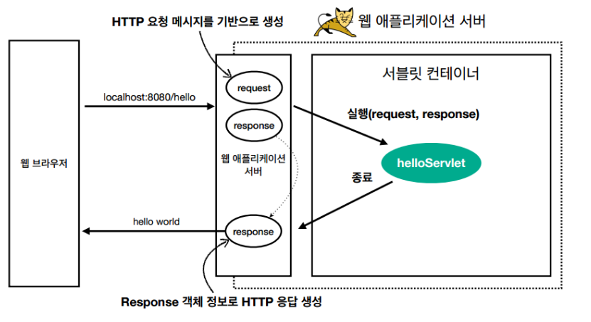 웹 애플리케이션 서버는 HTTP 기반, 애플리케이션 로직을 수행하는 역할 (Tomcat)