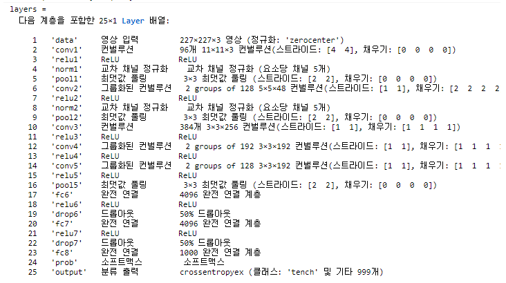 Alexnet의 저 레이어들을 보자.. 전이학습이 얼마나 우리에게 축복을 내려주는지 알 수 있다.