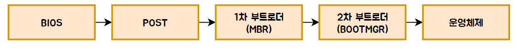 - 메모리에 올라온 1차 부트로더(MBR)가 2차 부트로더(BOOTMGR)을 메모리에 올려 운영체제를 실행시킨다