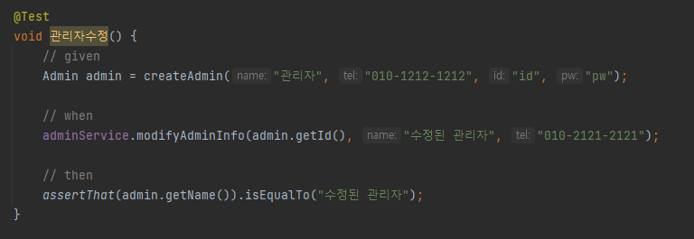 에러가 발생한 관리자 수정에 대한 테스트 코드인데 왜 에러가 발생하지 싶었던 순간..