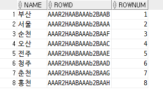 - 의사 컬럼은 실제 테이블에는 없지만 인위적으로 추가된 가짜 컬럼. (rowid, rownum)