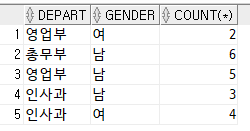 - GROUP BY절이 있으면 필드 목록에는 기준 필드나 집계함수만 올 수 있다